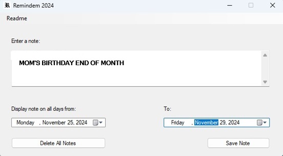 startup. Submit notes to yourself and the dates you want them