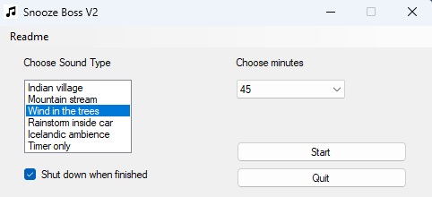 Choose from five installed files or use only the timer function. Select